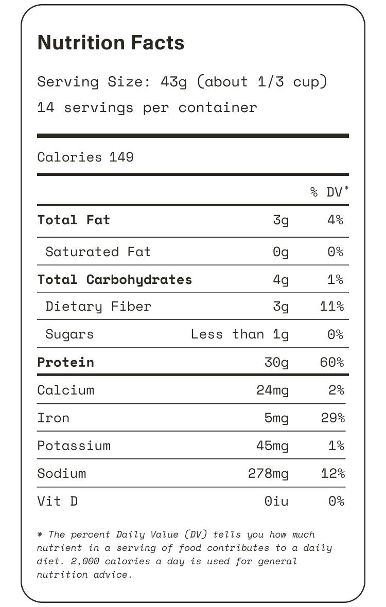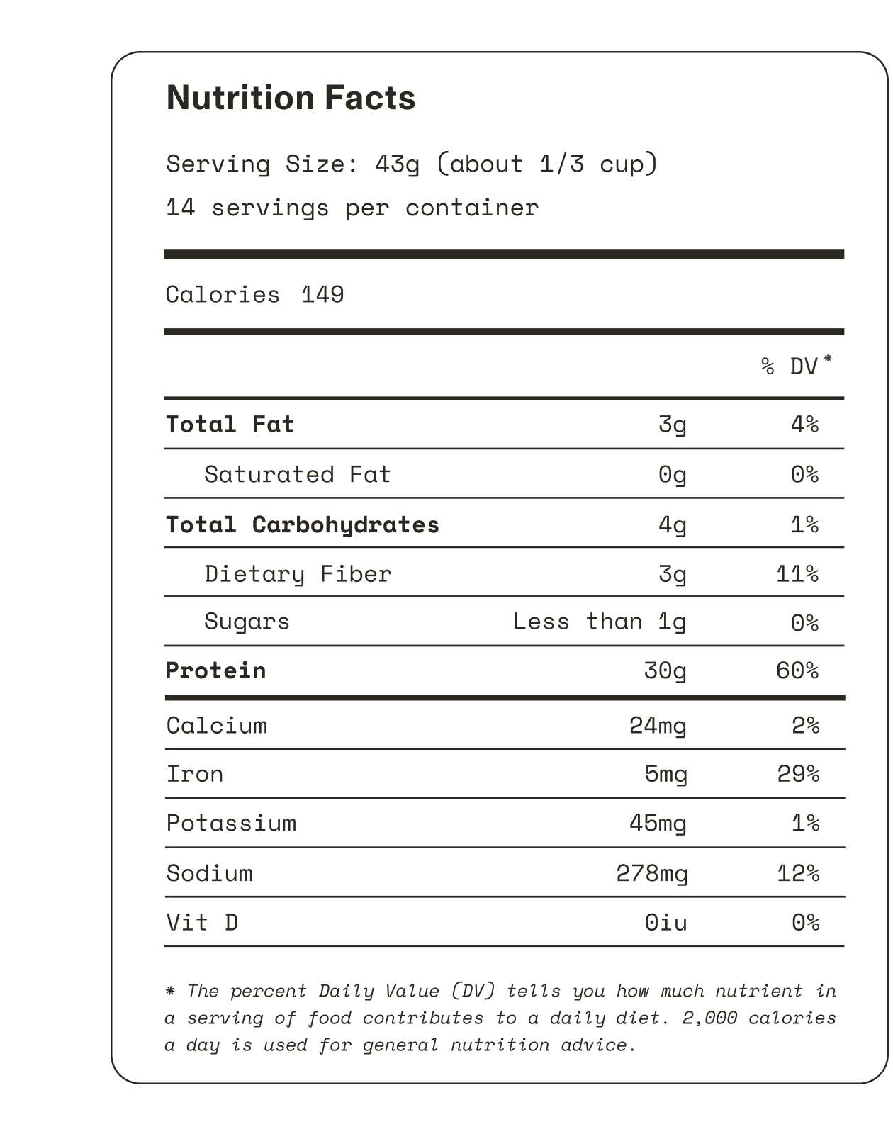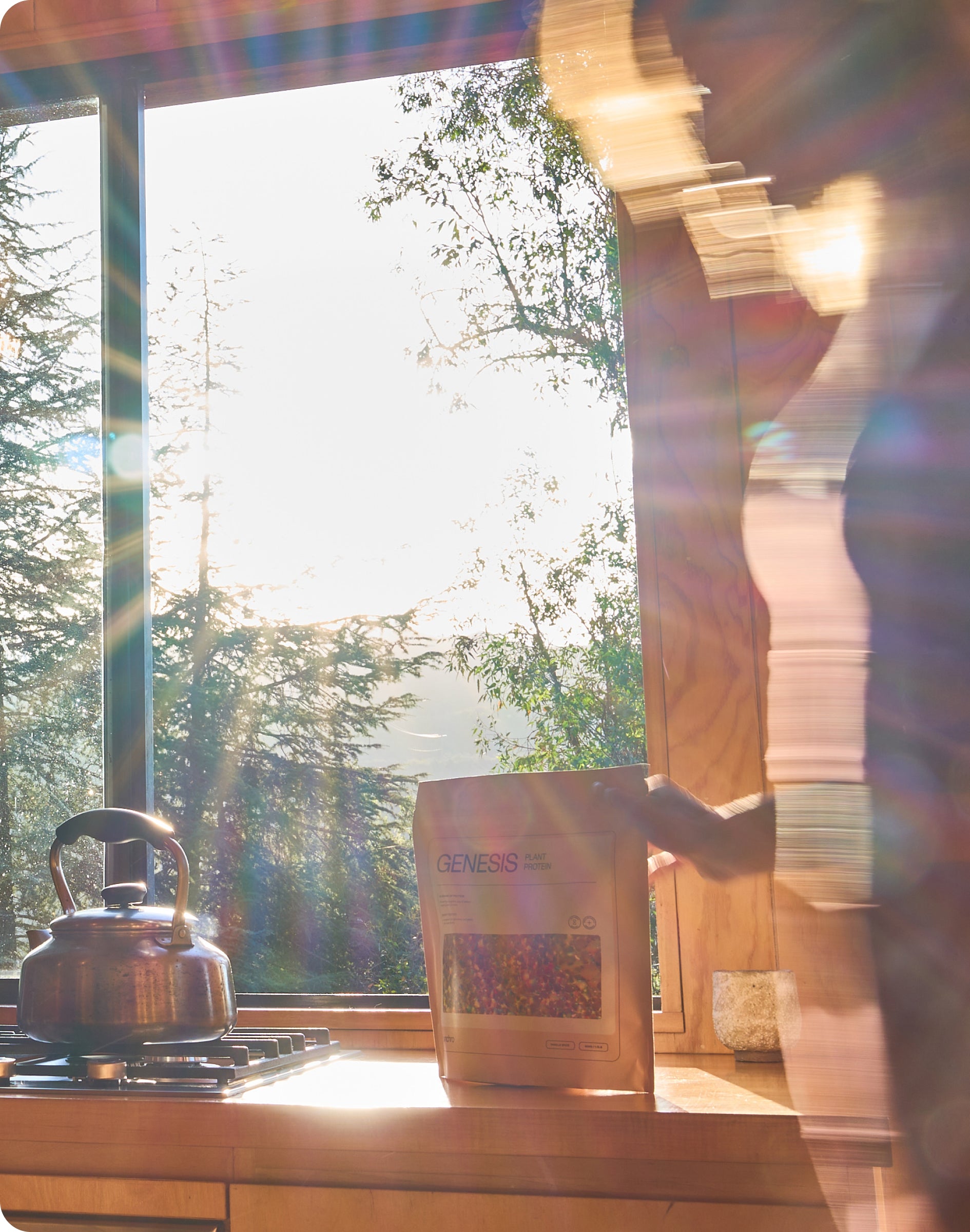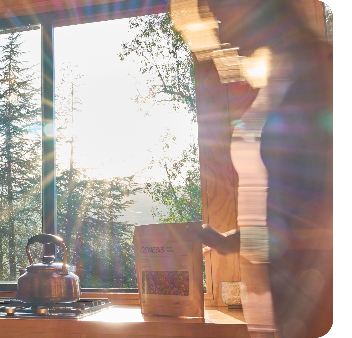 The plant protein blend in Genesis is highly digestible and formulated to provide an ideal amino acid profile. One serving of Genesis contains 30g of amino-complete plant protein.