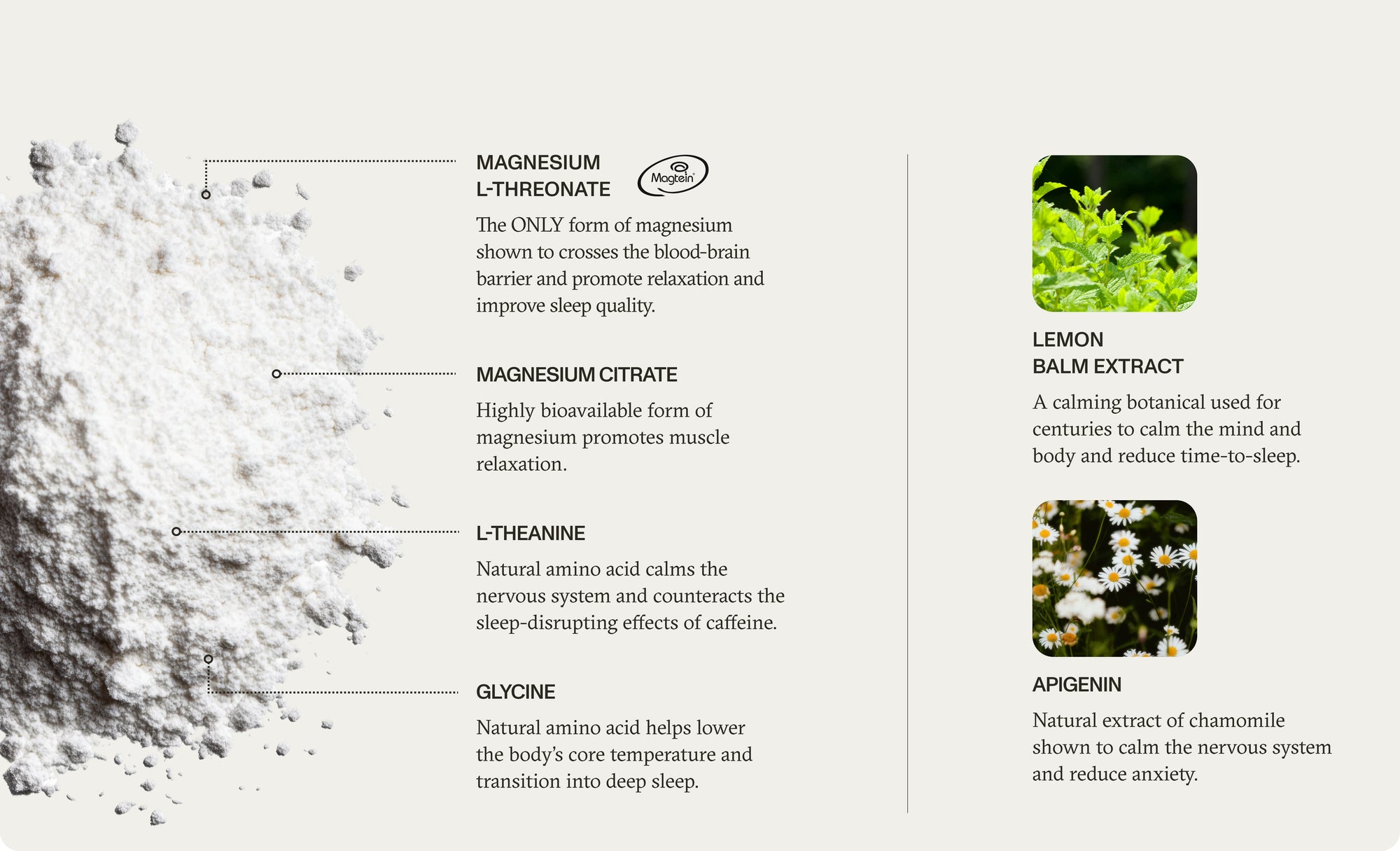 Most sleep supplements follow a common formula - a combination of melatonin and/or sedatives (i.e. valerian). Unfortunately, both have been shown to negatively impact Deep and REM sleep quality (explaining why you’ll often wake up groggy and unrefreshed).
